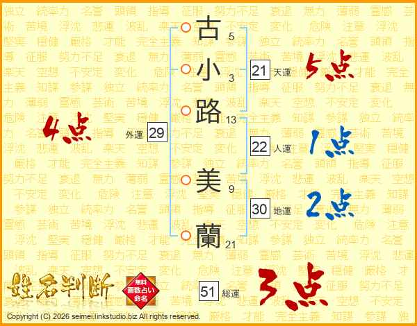 古小路美蘭さんの天運は21画の5点!