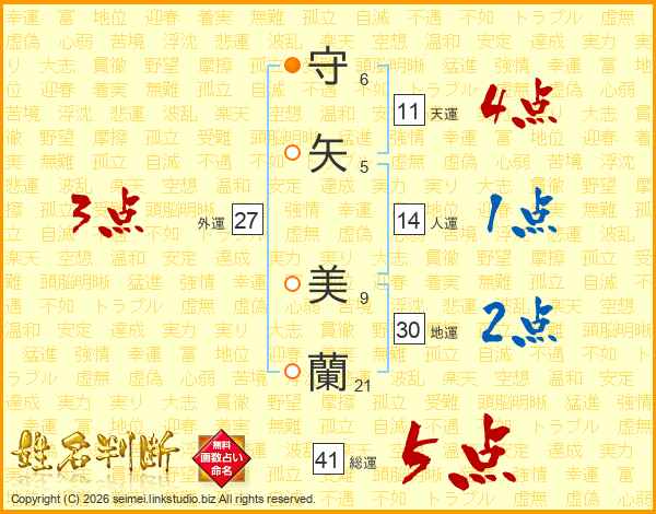 守矢美蘭さんの総運は41画の5点!