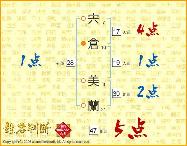宍倉美蘭さんの総運は47画の5点!