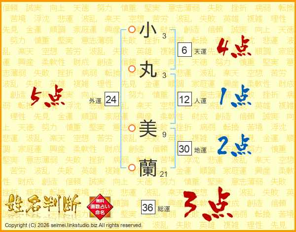小(3画)丸(3画) 美(9画)蘭(21画)