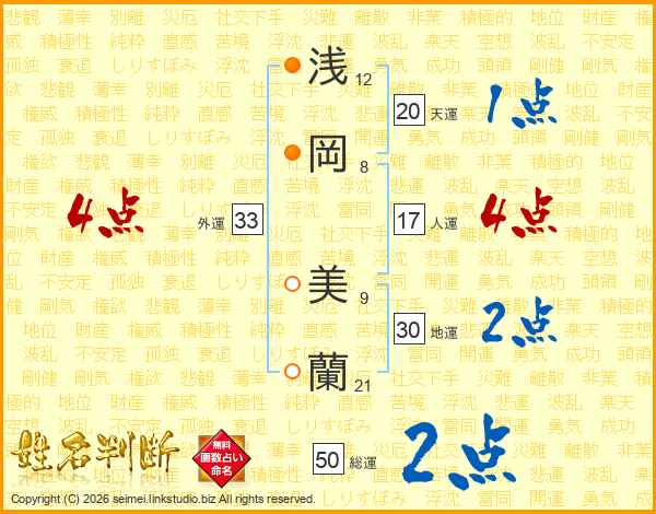 浅岡美蘭さんの外運は33画の4点!