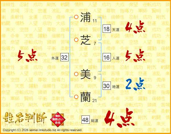 浦芝美蘭さんの総運は48画の4点!