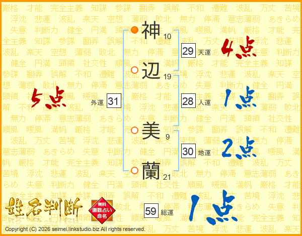 神辺美蘭さんの総運は59画の1点!