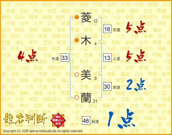 菱木美蘭さんの外運は33画の4点!