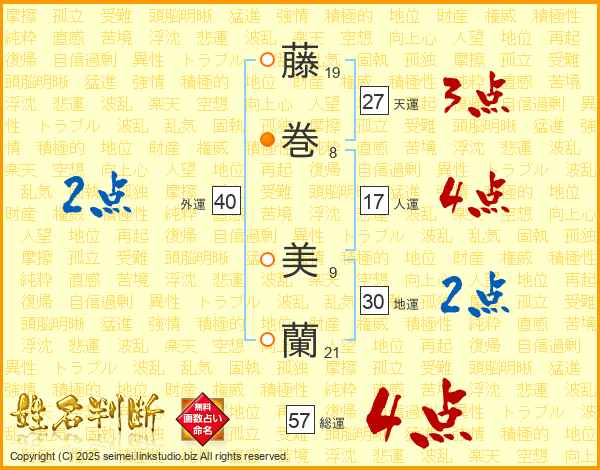 藤(19画)巻(8画) 美(9画)蘭(21画)