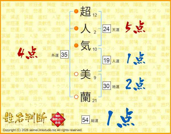 超人気美蘭さんの天運は24画の5点!