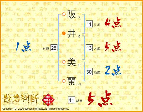 阪井美蘭さんの総運は41画の5点!