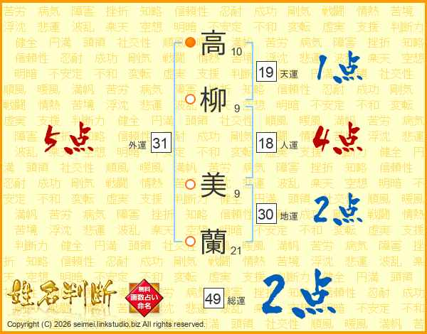 高柳美蘭さんの総運は49画の2点!