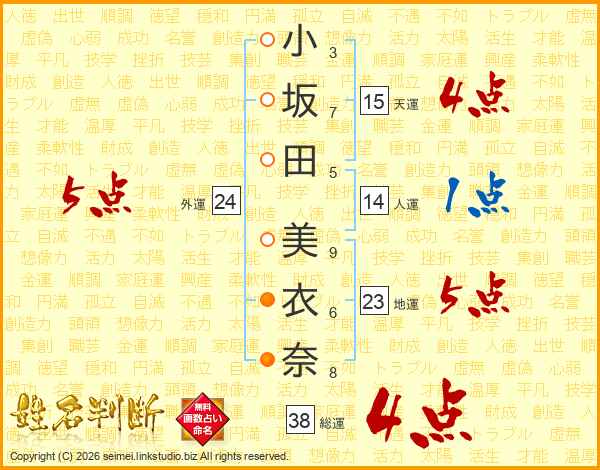 小坂田美衣奈さんの総運は38画の4点!