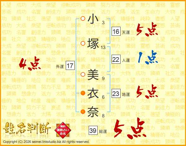小塚美衣奈さんの総運は39画の5点!