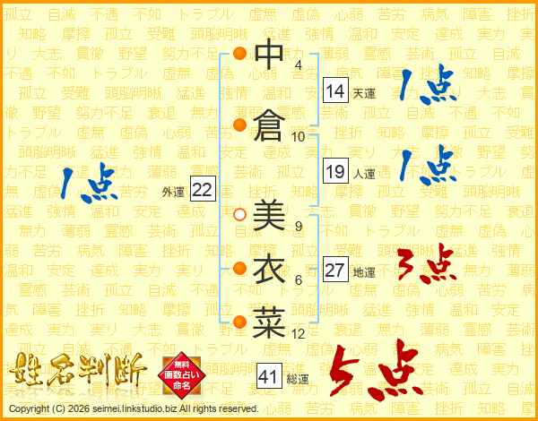 中倉美衣菜さんの天運は14画の1点!