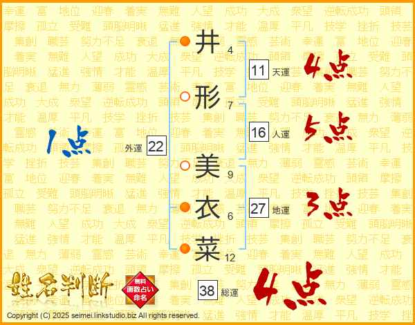 井形美衣菜さんの総運は38画の4点!