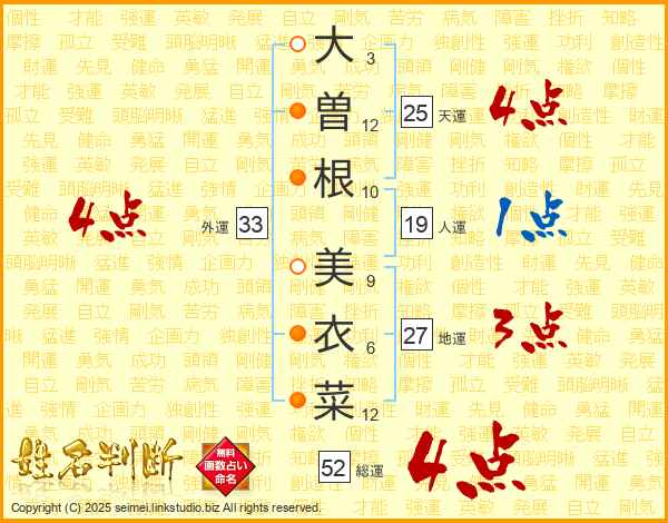 大曽根美衣菜さんの天運は25画の4点!