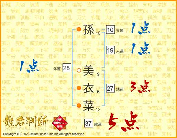 孫美衣菜さんの総運は37画の5点!