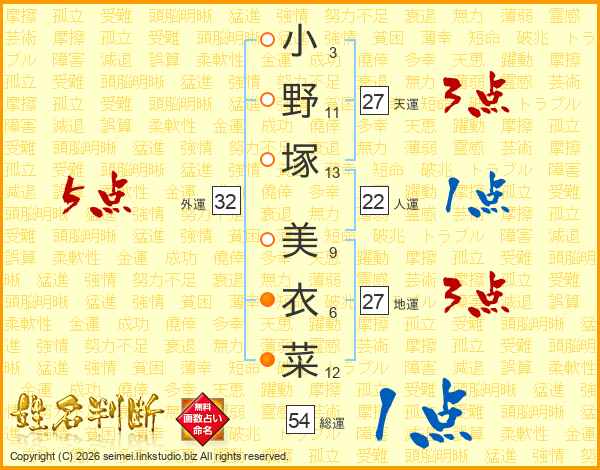 小野塚美衣菜さんの天運は27画の3点!