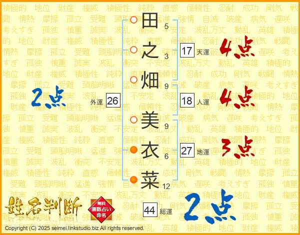 田之畑美衣菜さんの総運は44画の2点!