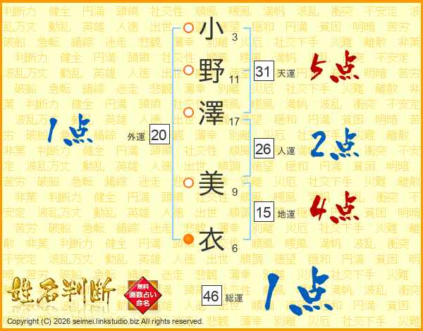 小野澤美衣さんの天運は31画の5点!