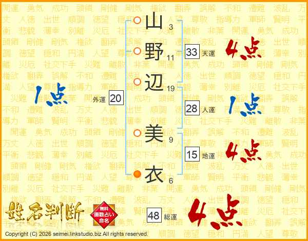 山野辺美衣さんの天運は33画の4点!