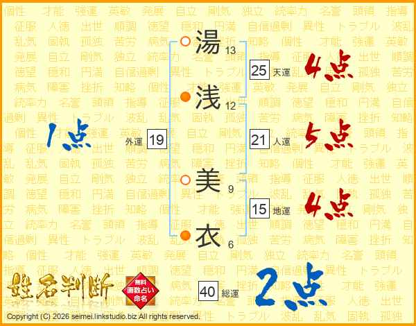 湯浅美衣さんの天運は25画の4点!