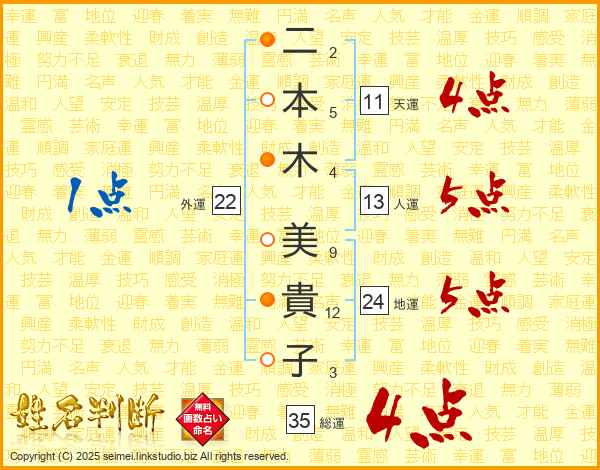 二本木美貴子さんの総運は35画の4点!