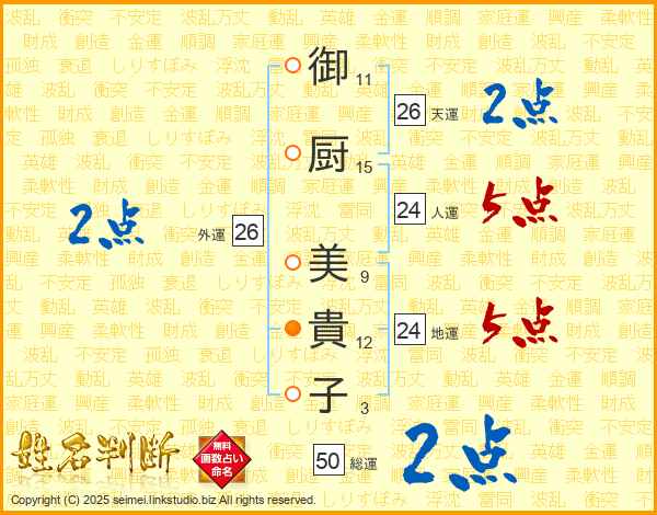 御厨美貴子さんの外運は26画の2点!