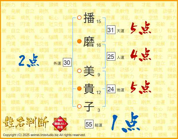 播磨美貴子さんの天運は31画の5点!
