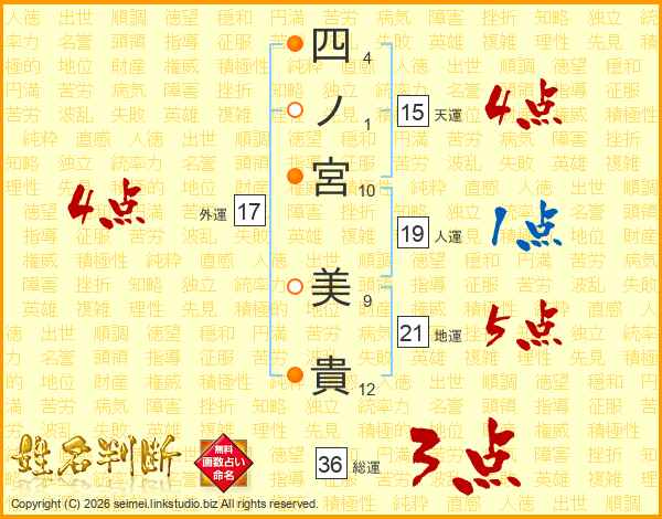 四ノ宮美貴さんの外運は17画の4点!