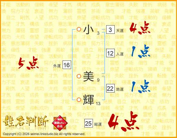 小美輝さんの総運は25画の4点!