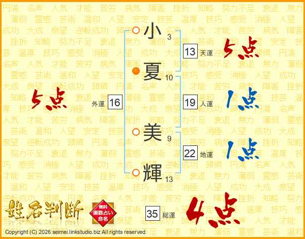 小夏美輝さんの総運は35画の4点!