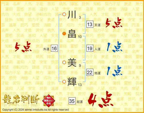 川畠美輝さんの総運は35画の4点!