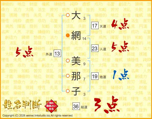 大網美那子さんの人運は23画の5点!
