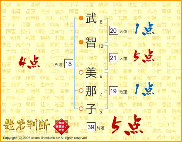 武智美那子さんの総運は39画の5点!