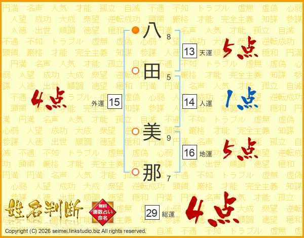 八田美那さんの総運は29画の4点!