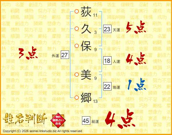 荻久保美郷さんの総運は45画の4点!