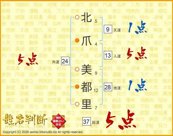 北爪美都里さんの外運は24画の5点!
