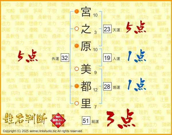宮之原美都里さんの総運は51画の3点!