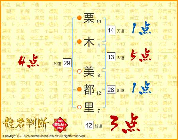 栗木美都里さんの天運は14画の1点!