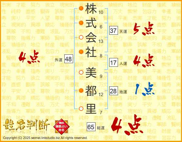 株(10画)式(6画)会(13画)社(8画) 美(9画)都(12画)里(7画)