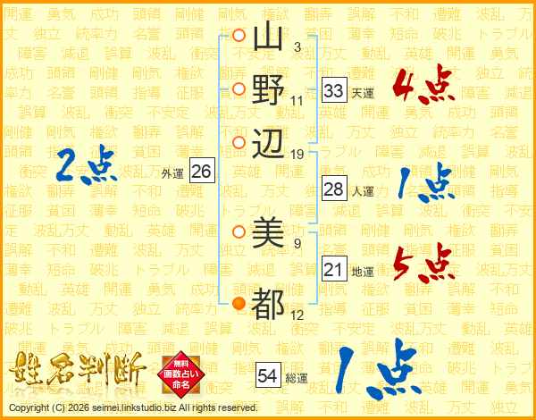 山(3画)野(11画)辺(19画) 美(9画)都(12画)