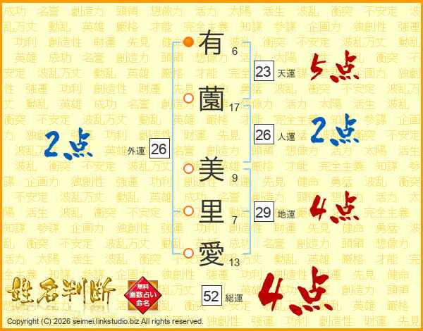 有薗美里愛さんの総運は52画の4点!
