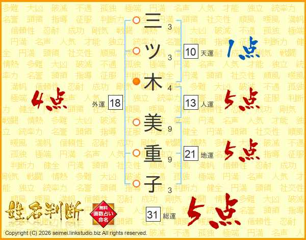 三ツ木美重子さんの総運は31画の5点!