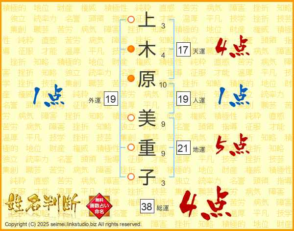 上(3画)木(4画)原(10画) 美(9画)重(9画)子(3画)