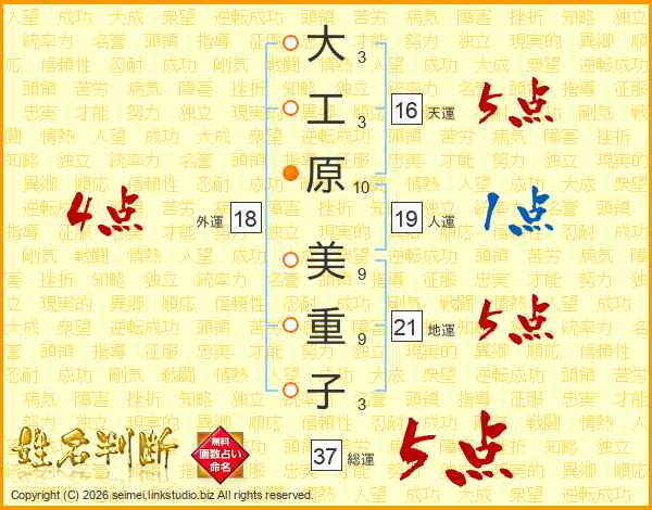 大工原美重子さんの総運は37画の5点!