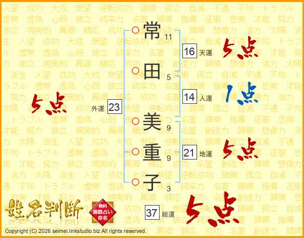 常(11画)田(5画) 美(9画)重(9画)子(3画)