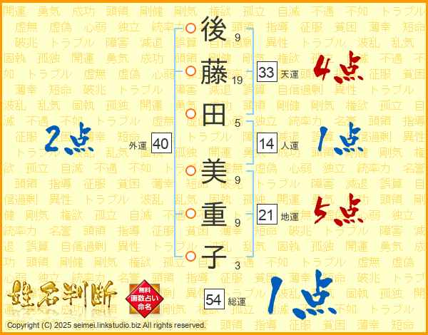 後(9画)藤(19画)田(5画) 美(9画)重(9画)子(3画)