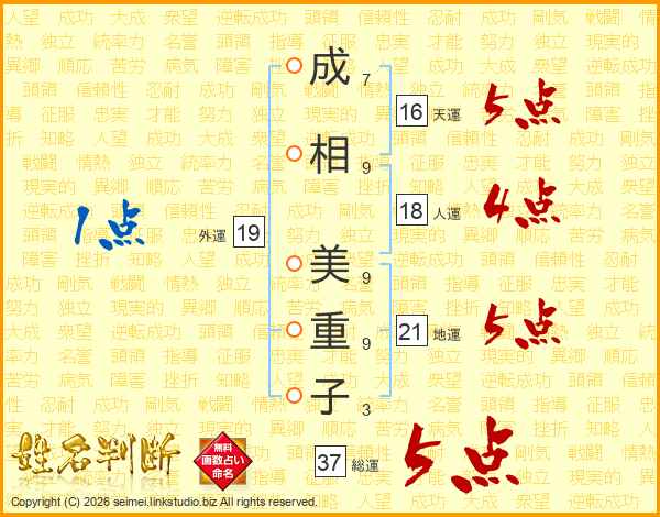 成(7画)相(9画) 美(9画)重(9画)子(3画)