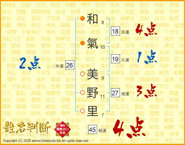 和氣美野里さんの総運は45画の4点!