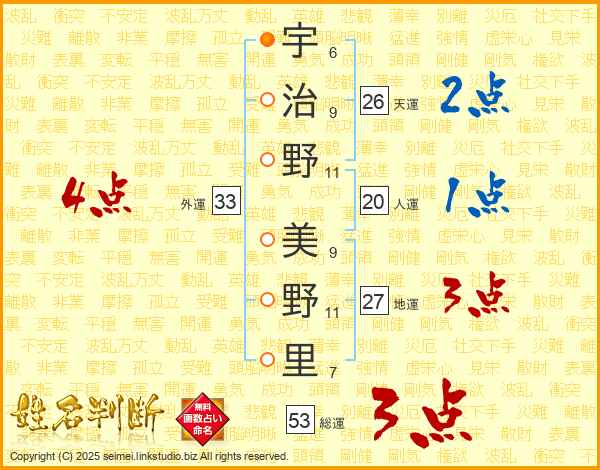 宇治野美野里さんの外運は33画の4点!