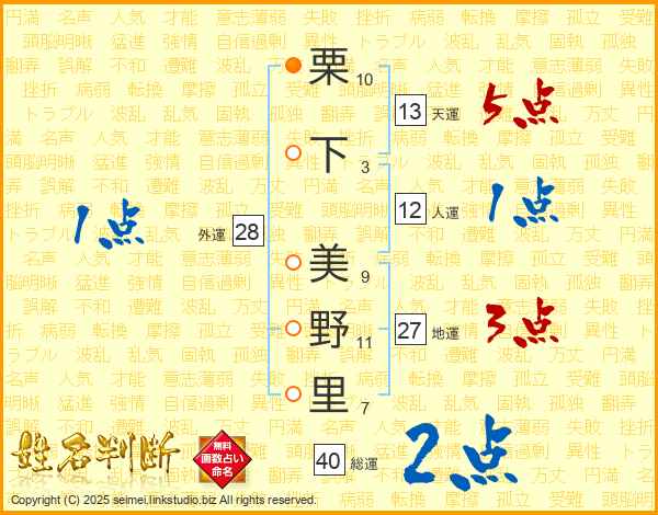 栗(10画)下(3画) 美(9画)野(11画)里(7画)