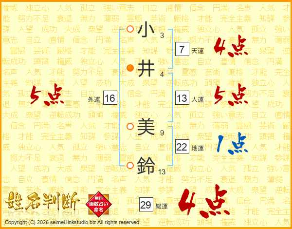 小井美鈴さんの総運は29画の4点!